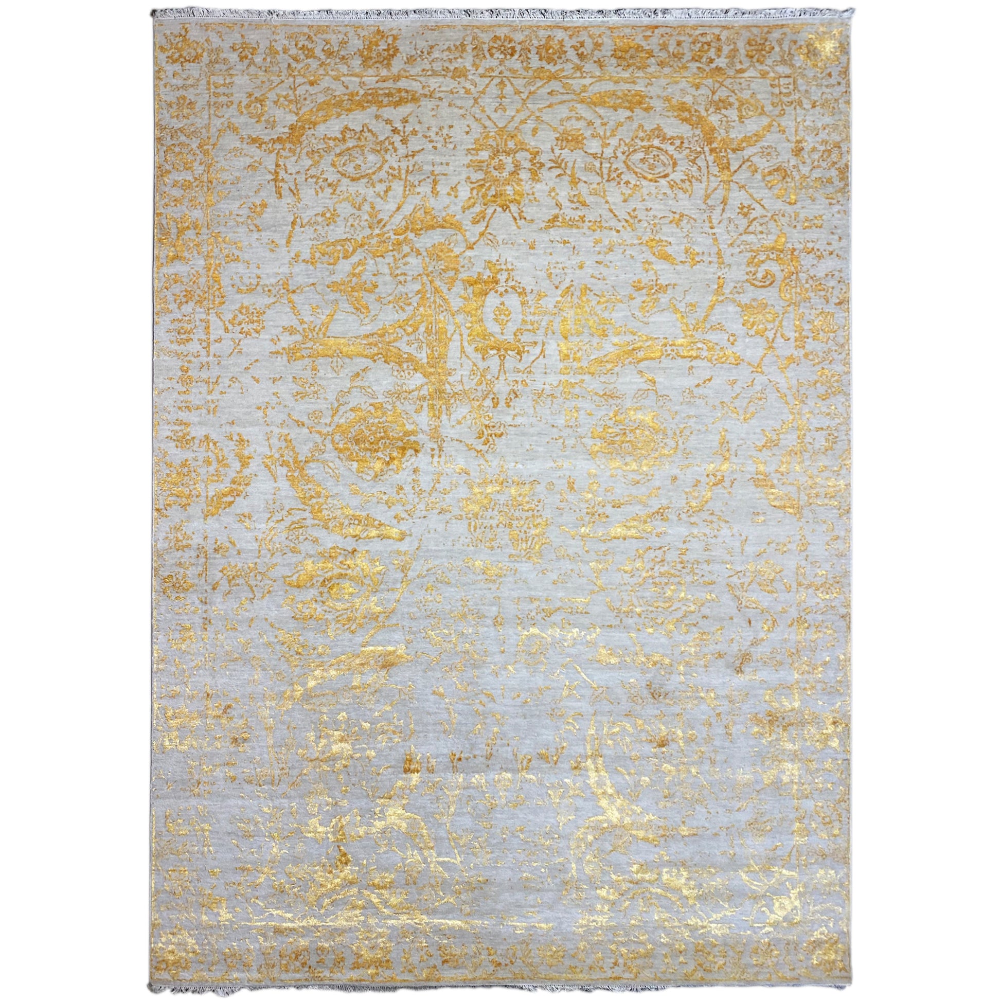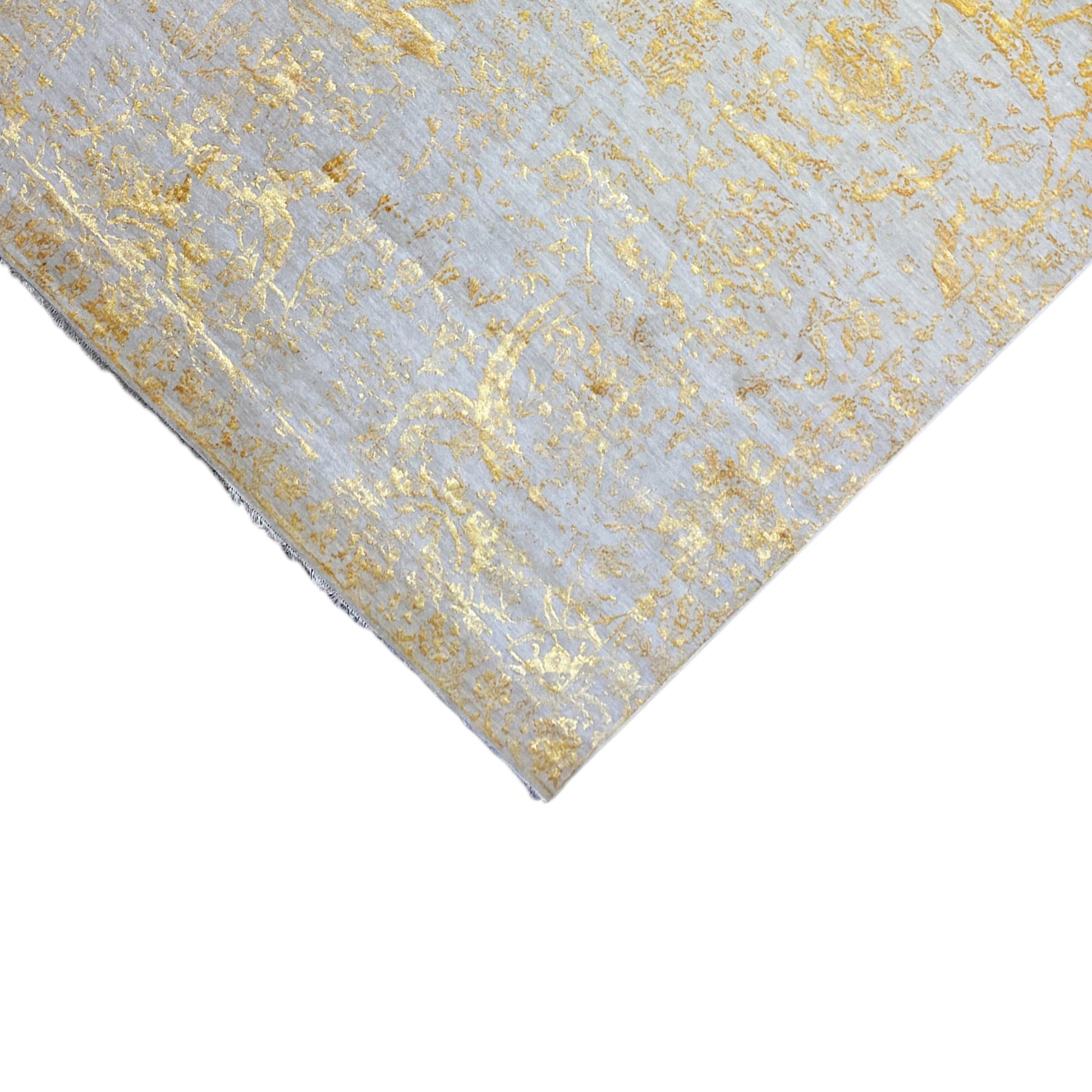Enriqueça a sua casa com este tapete de designer requintado, feito à mão. O padrão fascinante em cinzento e dourado oferece um estilo de decoração moderno e opulento, que confere a qualquer divisão um toque de luxo. Fabricado com lã de alta qualidade e viscose brilhante, este elegante tapete (316x245 cm) proporciona não só um apelo visual, mas também uma sensação agradável ao toque e durabilidade para o seu interior.