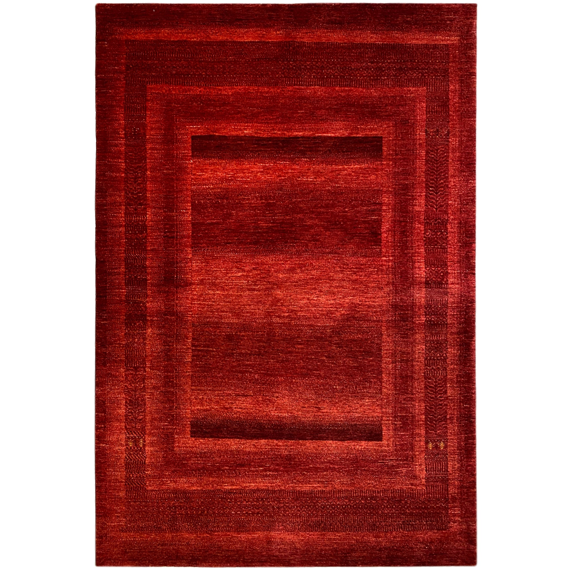 Este tapete Gabbeh Luri feito à mão em tons intensos de vermelho confere profundidade e estrutura a espaços modernos e ecléticos. Feito de lã fiada à mão e tingida com plantas, apresenta um elegante gradiente de cor com uma borda emoldurada geometricamente. Com as suas dimensões de 247x173 cm, é ideal como um ponto focal elegante em salas de estar, salas de jantar ou lounges.