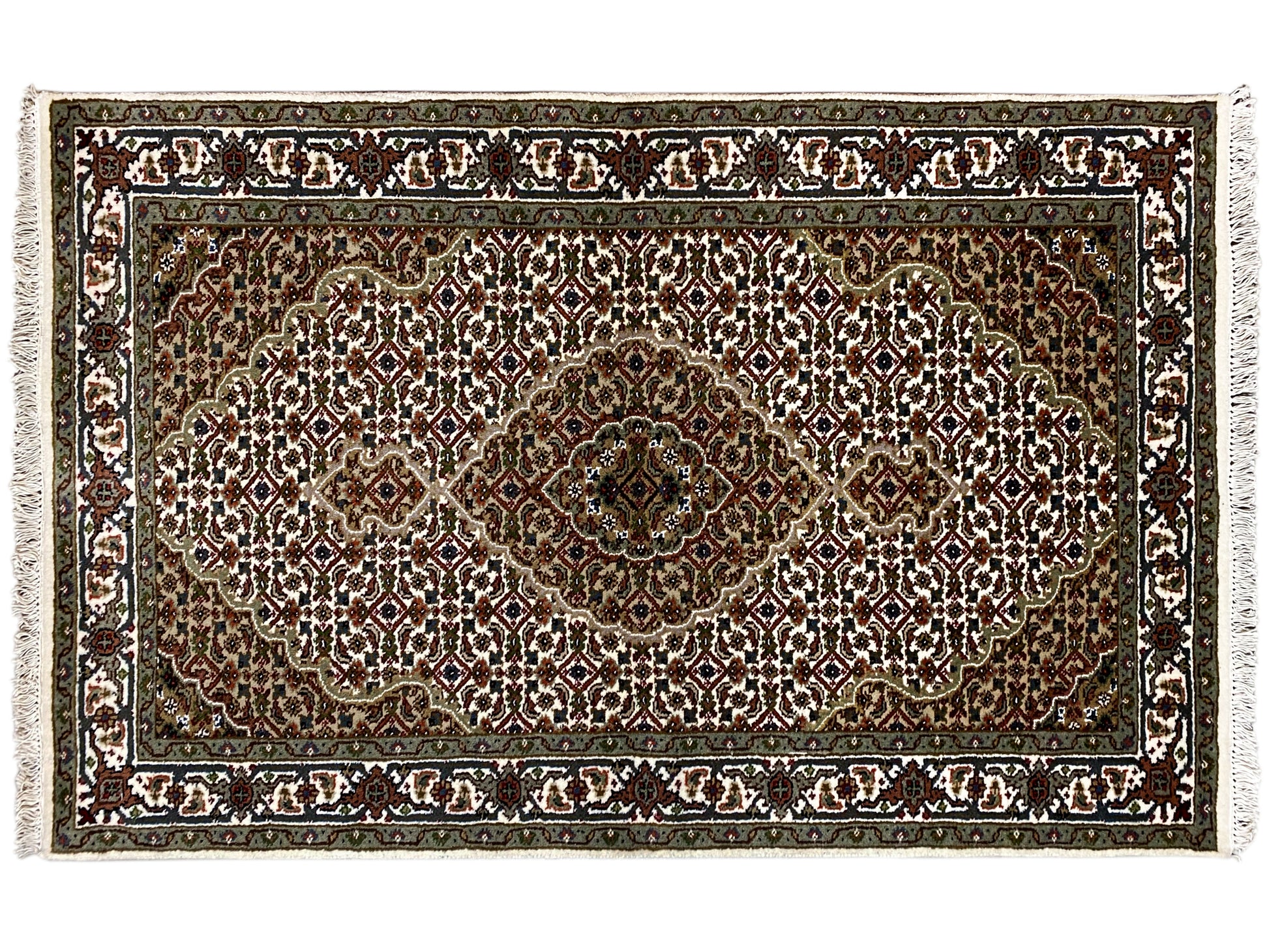 Originalmente, os tapetes Tabriz vêm do noroeste da Pérsia. Atualmente, estes tapetes também são feitos à mão na Índia com os mesmos padrões de qualidade. Os nossos Tabriz são tapetes de alta qualidade e requinte, feitos com lã fina e viscose. Os tapetes têm cores fortes, claras e profundas e, devido ao seu bom acabamento, são muito duráveis.
