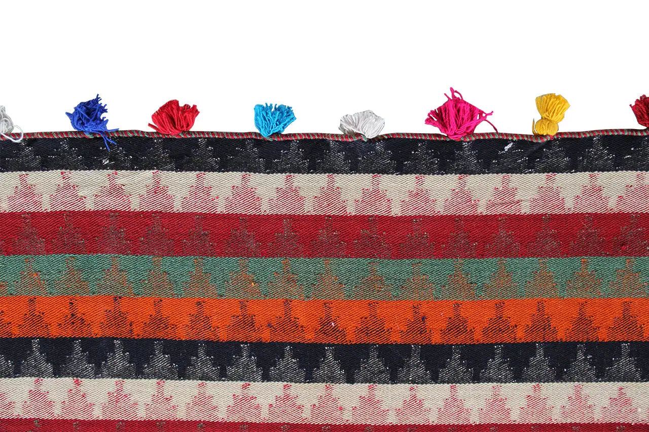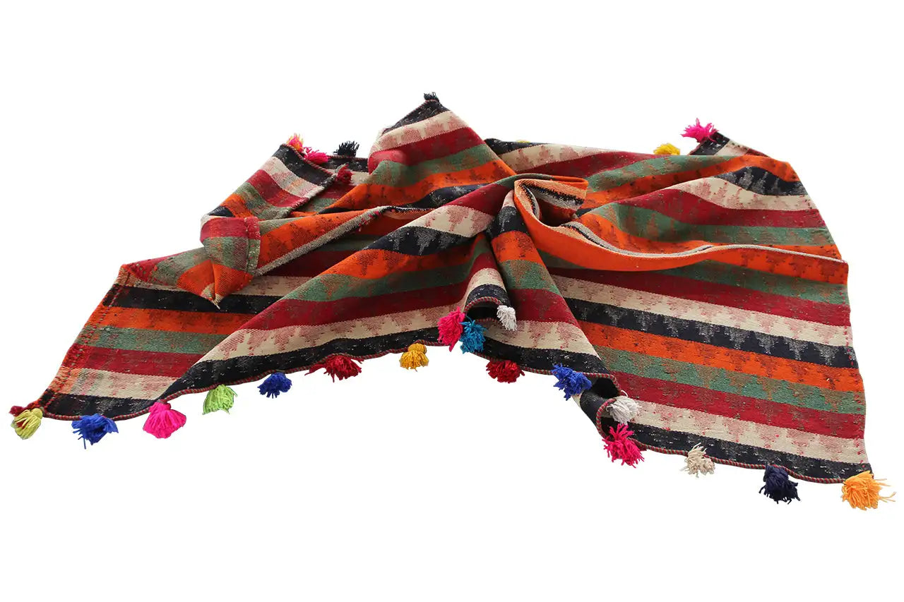 Os Jajim são conhecidos sobretudo pela sua cor vibrante e qualidade únicas. Estas são obtidas através de processos naturais de tingimento com plantas. Ao contrário dos nossos outros tapetes, os Jajims são tecidos e não nós. Este processo de fabrico torna o Jajim muito plano. Este processo de fabrico é também uma tradição nómada com séculos de antiguidade. Os nómadas não usavam apenas os tapetes tecidos prontos como decoração de chão, mas também, entre outras coisas, como decoração de parede ou como material para confeccionar tendas. Técnicas especiais de fabrico e cores naturais obtidas de plantas conferem aos Kelims um aspeto único.