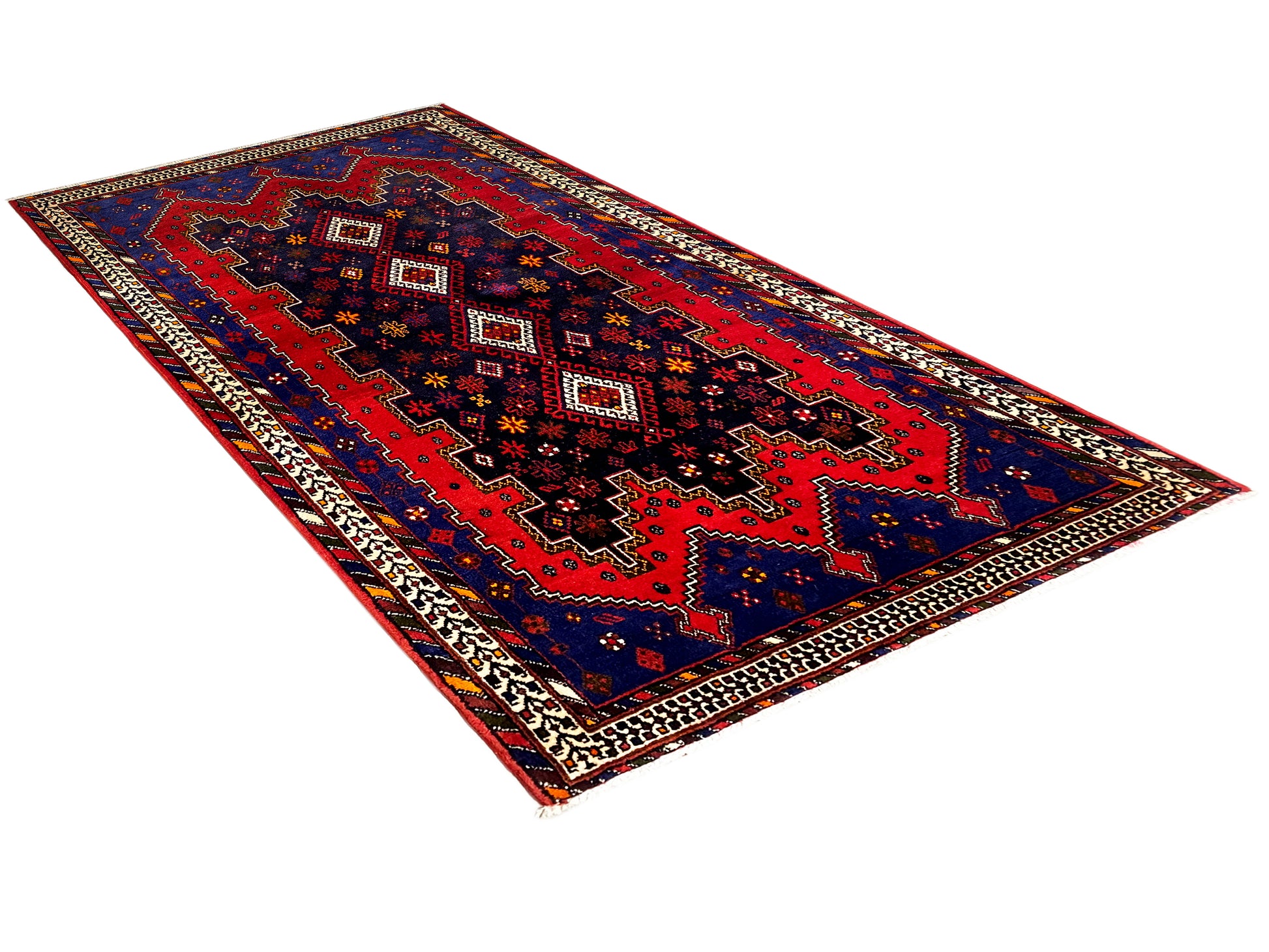 Este tapete corredor Sirjan feito à mão da região de Sirjan, no sul da Pérsia (Irão), confeccionado com lã de alta qualidade fiada à mão, apresenta um design característico e tradicional em tons profundos de azul escuro e vermelho, acentuado por detalhes claros. Com as suas dimensões de 208x107 cm, é ideal para realçar corredores, entradas ou espaços estreitos com estilo. O padrão geométrico marcante com motivos repetidos de losangos e elementos florais estilizados nas bordas reflete a arte tradicional de tecelagem da região de Sirjan. A utilização de lã fiada à mão confere a este tapete uma textura especial e durabilidade. Este corredor Sirjan harmoniza maravilhosamente com estilos de decoração rústicos, tradicionais e etnicamente inspirados, conferindo a qualquer espaço uma atmosfera quente, autêntica e cheia de carácter. Este tapete não é apenas um revestimento de chão, mas uma janela para a rica tradição da arte dos tapetes persas e uma expressão de estilo e individualidade.