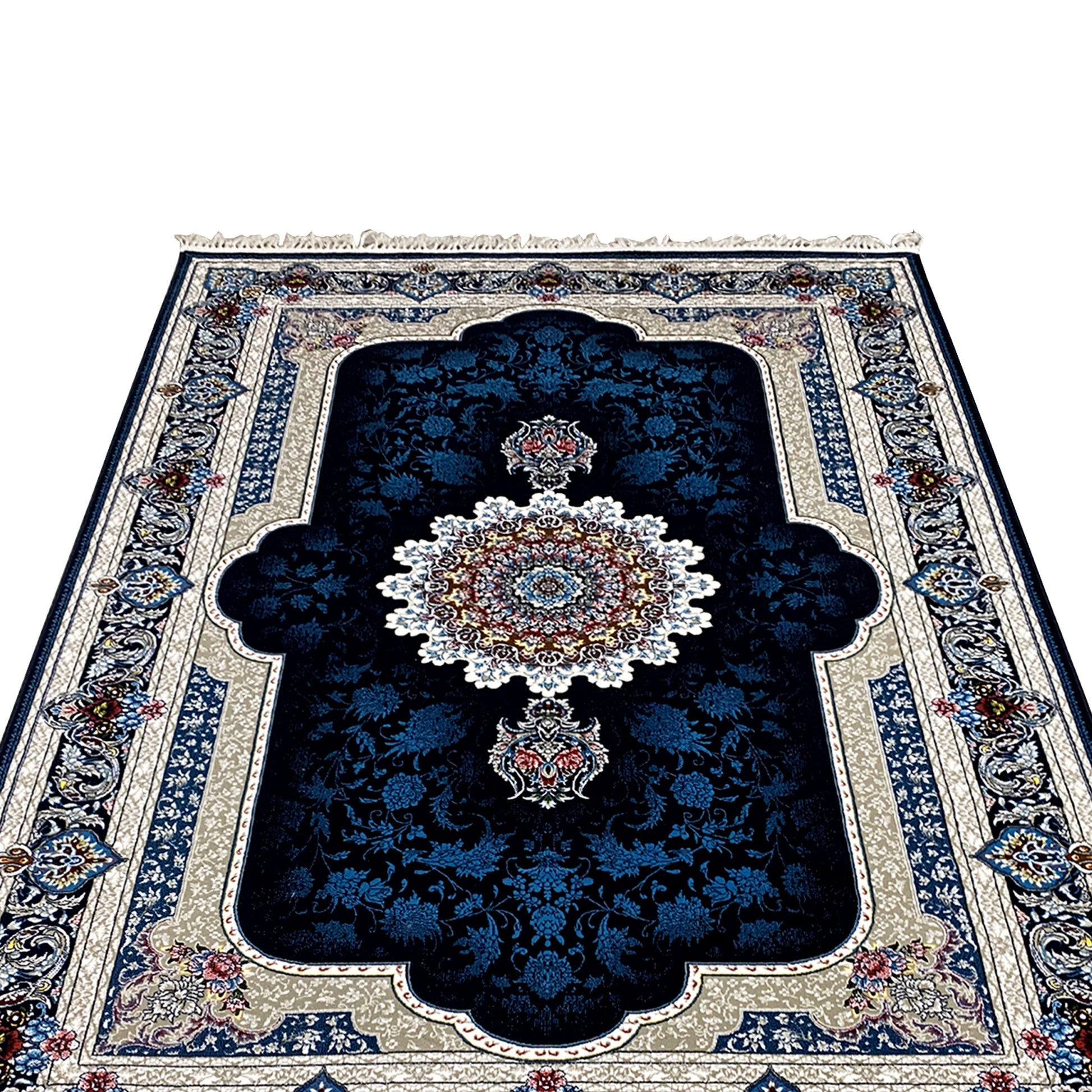 Dê ao seu espaço um toque de elegância luxuosa com o clássico tapete Sorur azul-marinho. O medalhão central artístico destaca-se sobre um campo azul-marinho intenso com padrões florais detalhados, enquadrado por uma borda refinada em tons de bege e cinza. Fabricado em 100% acrílico tratado termicamente, este tapete macio e resistente é perfeito para áreas de grande circulação, combinando estilo intemporal com durabilidade moderna. O tamanho generoso de 170x240cm é ideal para dar um ponto focal elegante à sua sala de estar ou quarto.