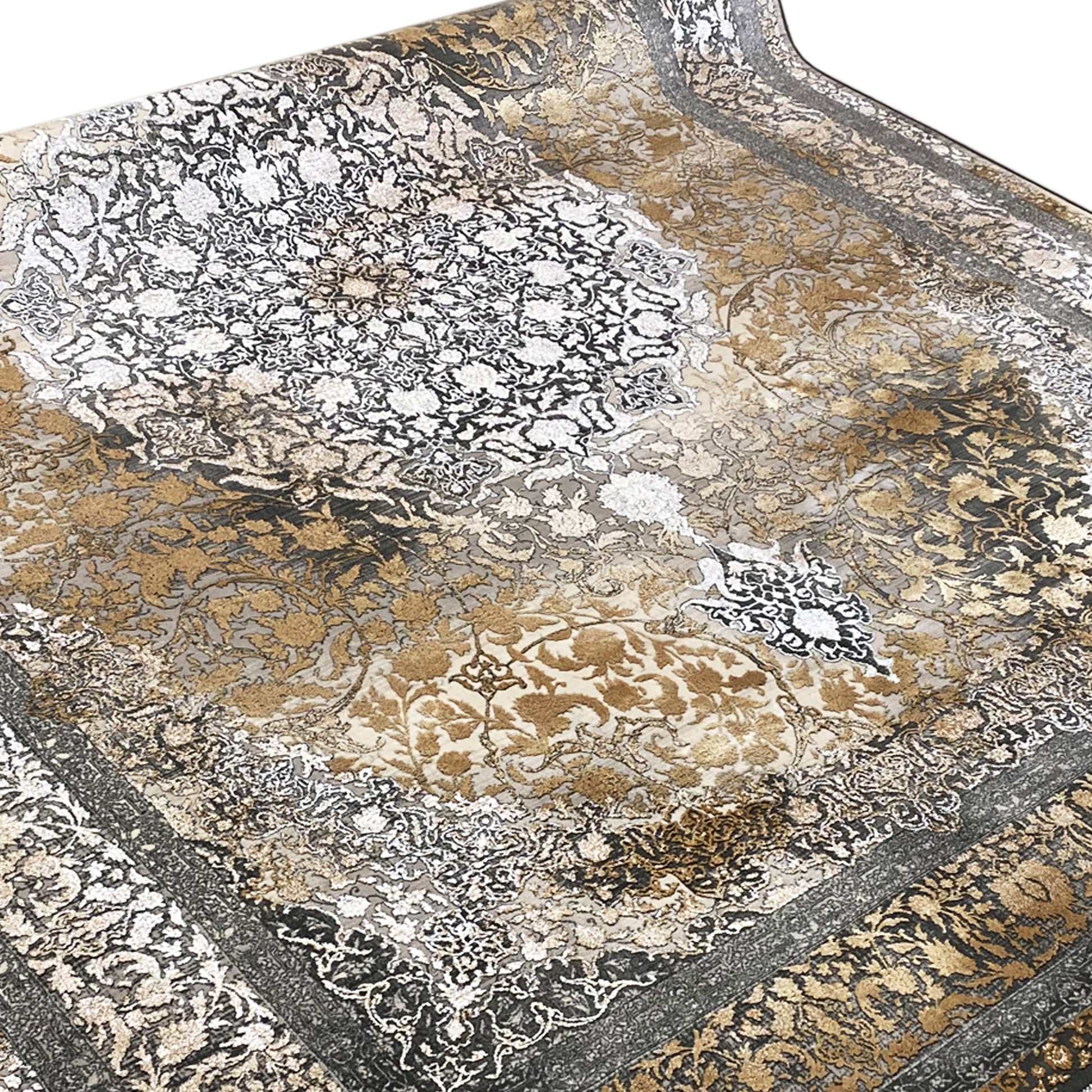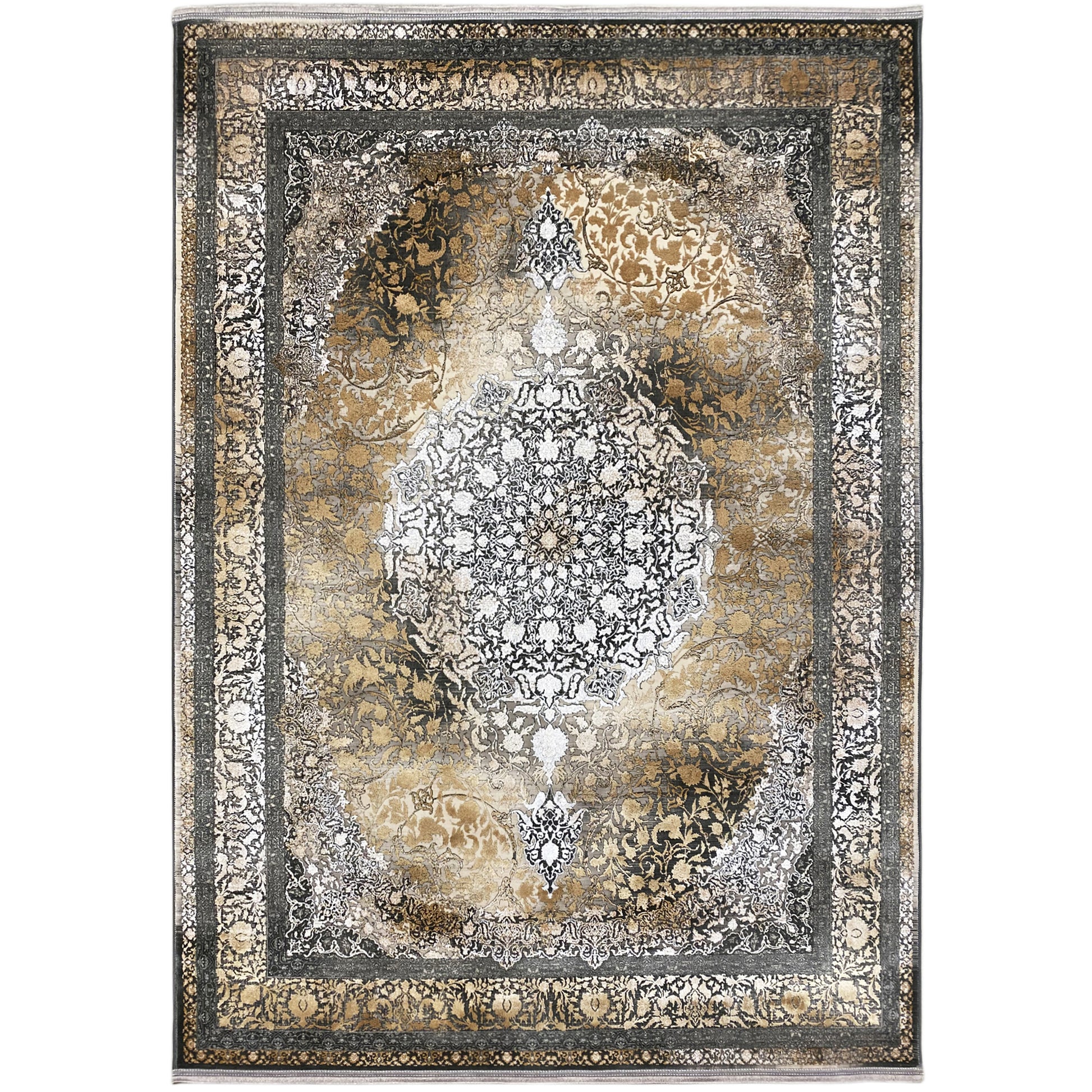 Dê à sua casa um toque de elegância vintage com este maravilhoso tapete clássico moderno. O seu artístico medalhão central destaca-se sobre um deslumbrante fundo castanho dourado fumado com um discreto gradiente de cor e um aspeto envelhecido. Feito de 100% acrílico tratado termicamente, este tapete macio e resistente é perfeito para áreas de grande circulação, combinando estilo luxuoso com durabilidade moderna. O tamanho generoso de 170x240cm é ideal para dar um ponto focal sofisticado à sua sala de estar ou quarto.