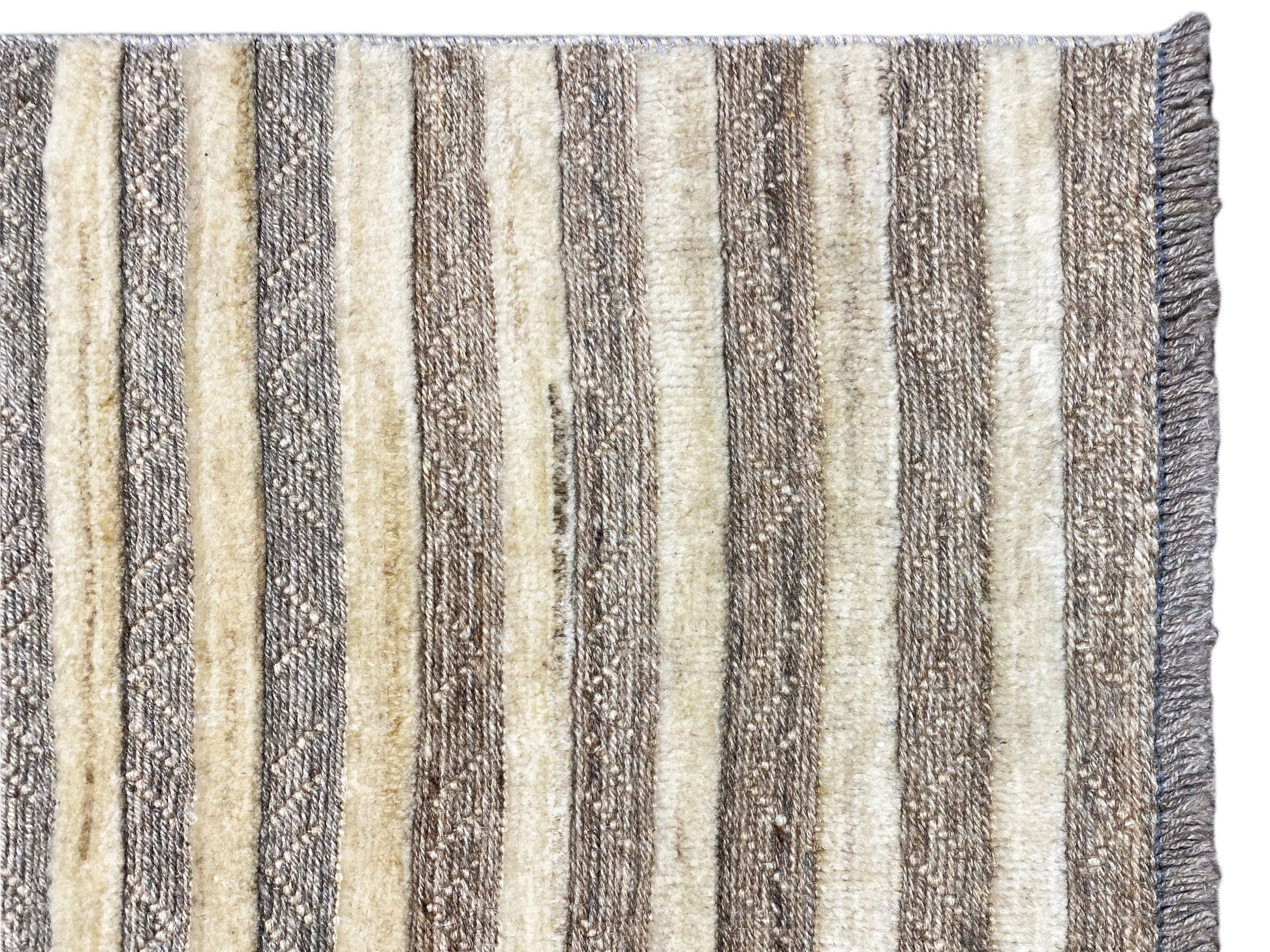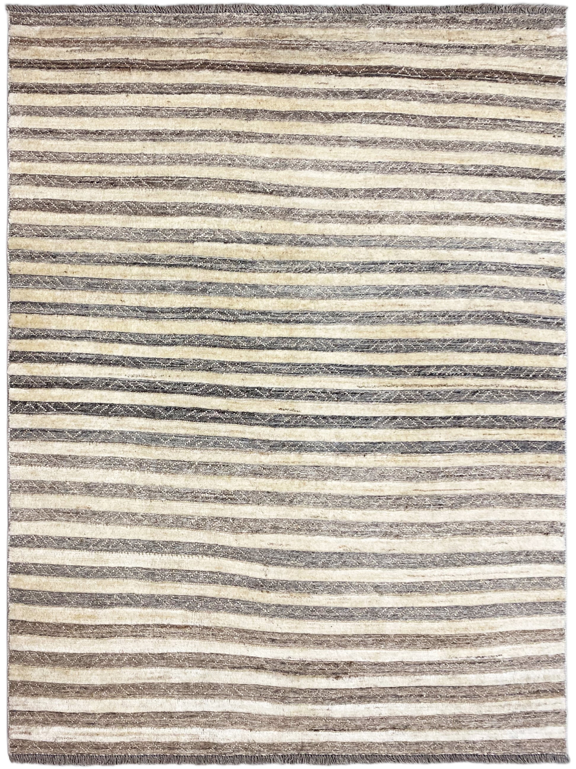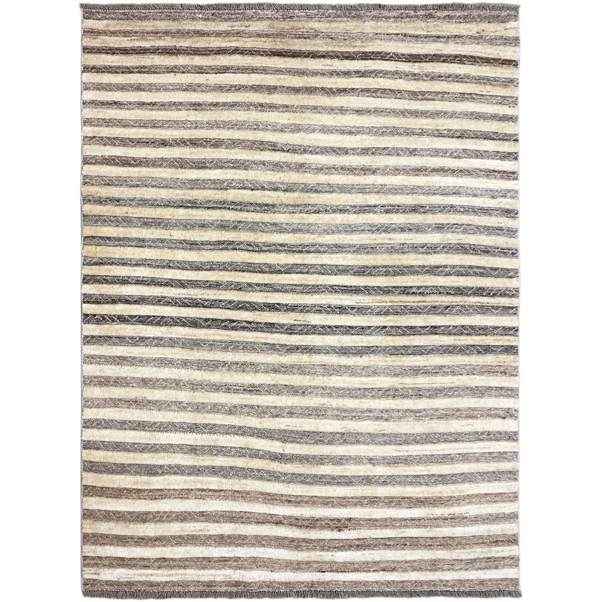 Este tapete Kelim Gabbeh tecido à mão, feito de 100% lã fiada manualmente, é um exemplo perfeito de decoração natural e design intemporal. Com as suas dimensões de 199x138 cm, apresenta um padrão fino de riscas horizontais em tons discretos de cinza e bege, que confere a qualquer espaço uma atmosfera calma e equilibrada. O seu estilo minimalista combina na perfeição com conceitos modernos de habitação ou com o design escandinavo, oferecendo, graças à lã natural de alta qualidade, uma experiência especialmente confortável e quente para os pés. O acabamento resistente torna esta peça única num companheiro duradouro para áreas de uso frequente, enquanto as cores orgânicas emanam uma elegância acolhedora. Aposte no artesanato autêntico que une estética e escolha ecológica de materiais ao mais alto nível.