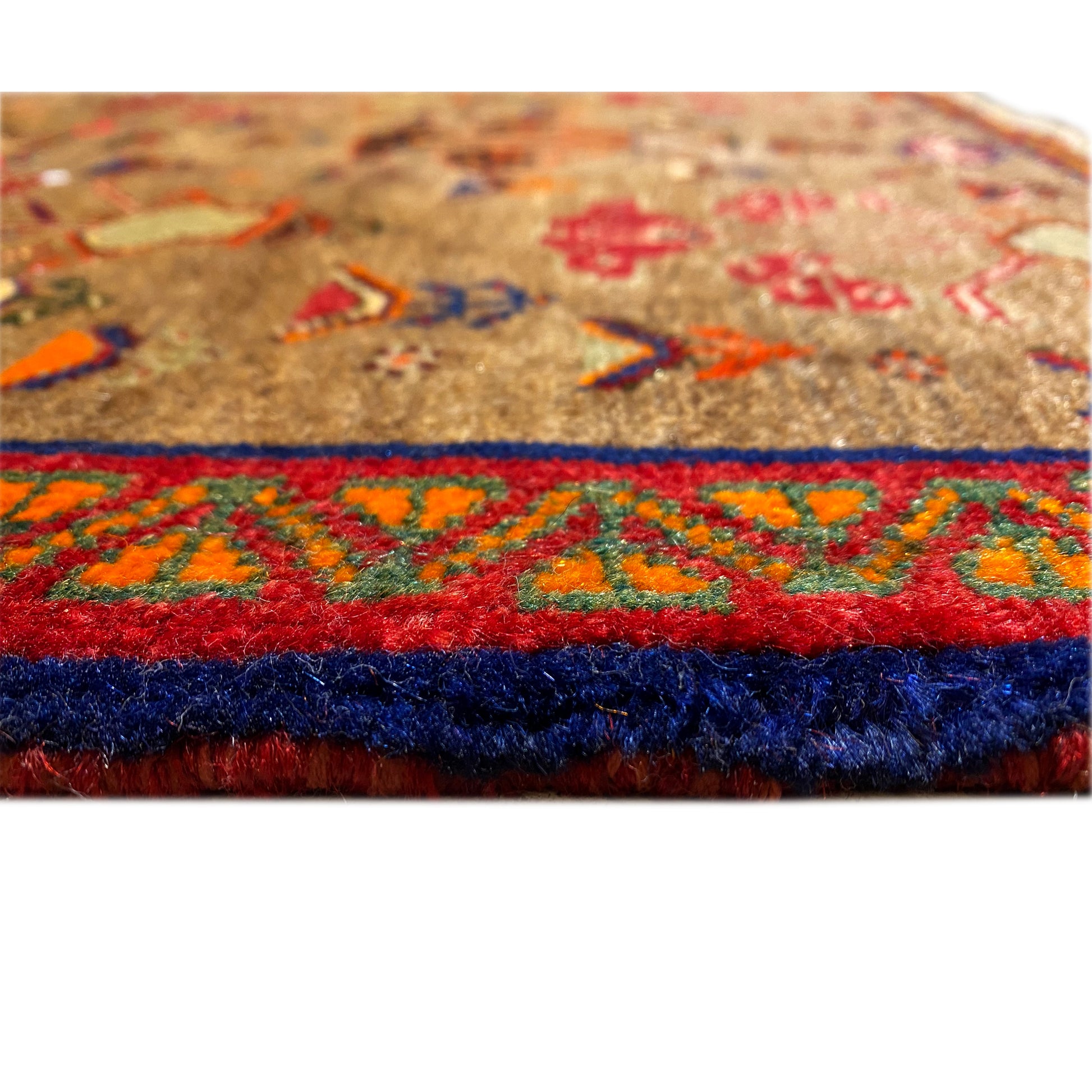 Este tapete Poshti requintado, feito à mão, em castanho quente com acentos coloridos, é um exemplo autêntico do artesanato dos povos nómadas do sul do Irão. Em particular, os tapetes tecidos pelo grupo tribal "Tork" são carinhosamente chamados de "Torkey". Com as suas dimensões de 63x61 cm, esta peça é ideal para dar a qualquer espaço um toque de decoração tradicional e aconchego, acentuado por um encantador padrão de árvore da vida com motivos de pássaros. O artesanato robusto em lã e algodão, bem como as cores vibrantes, tornam-no um acento duradouro e elegante.