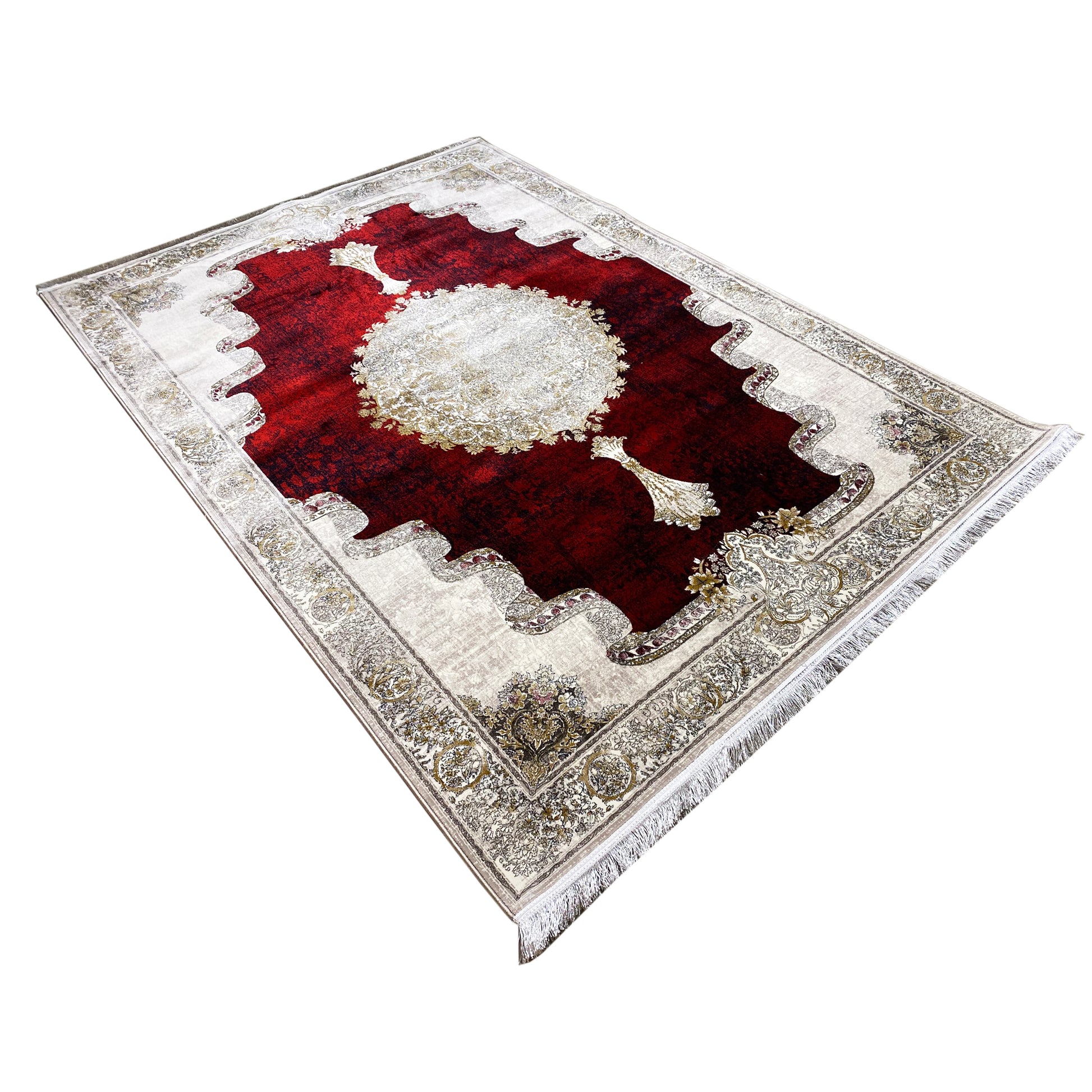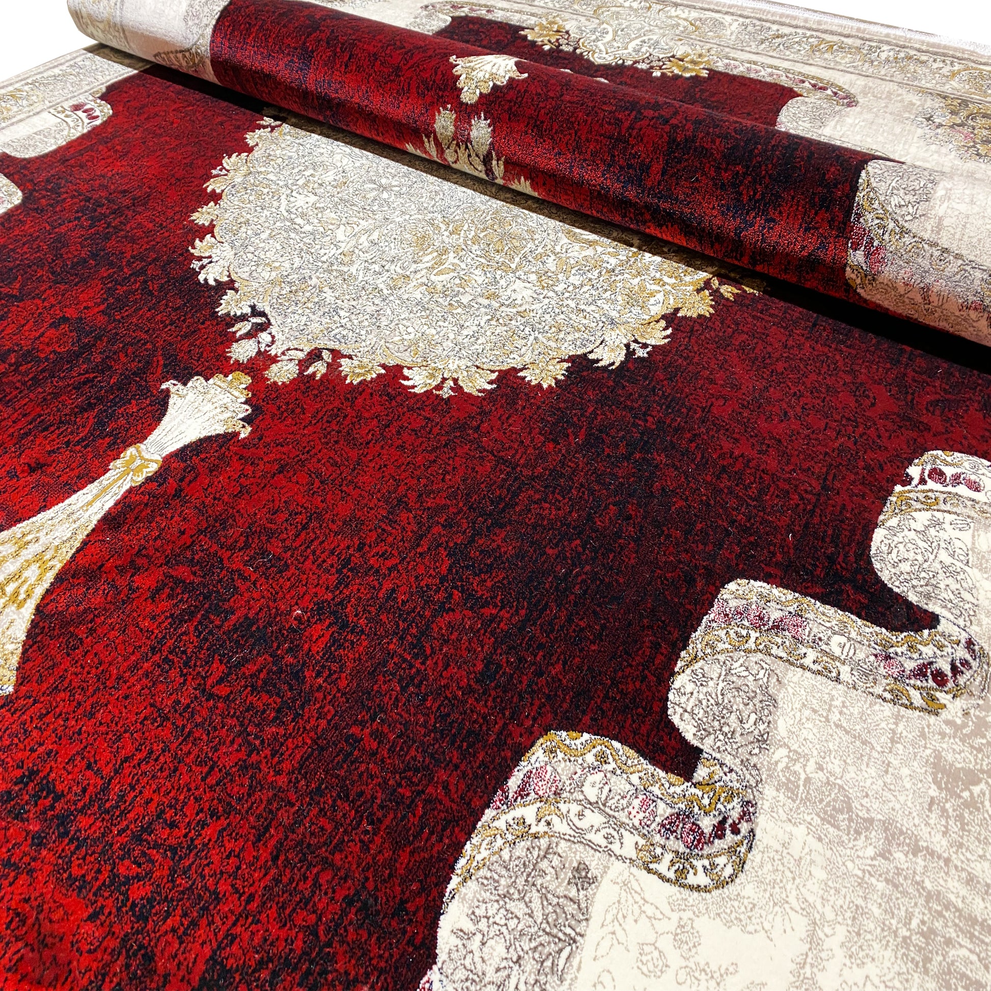 Transforme o seu espaço com este tapete clássico marcante e bonito. O campo interior vermelho vibrante e o medalhão creme artístico criam um ponto focal luxuoso, rodeado por uma borda elaboradamente desenhada com uma forma única. Feito de 100% acrílico tratado termicamente, este tapete macio e durável é perfeito para adicionar calor e elegância à sua sala de estar ou de jantar. O tamanho generoso de 170x240cm é ideal para definir um espaço e fazer uma declaração.